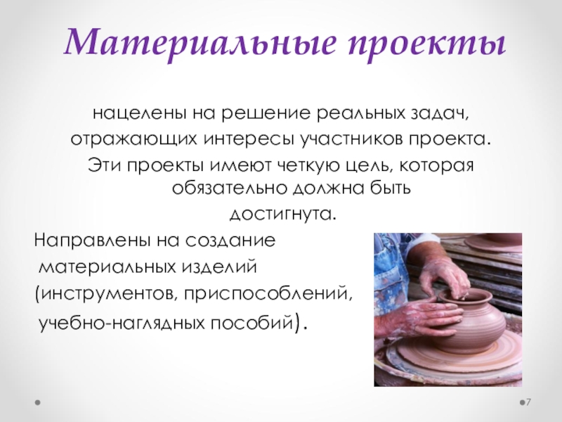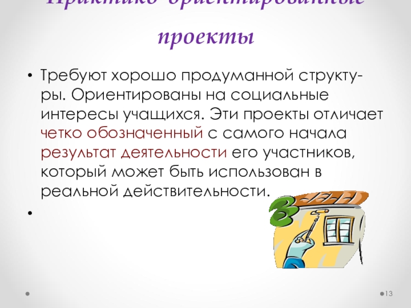 проекты отличает четко обозначенный с самого начала результат деятельности его участников, который может быть использован в реальной действительности.