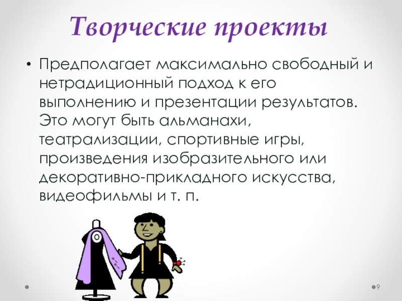 Предполагает максимально свободный и нетрадиционный подход к его выполнению