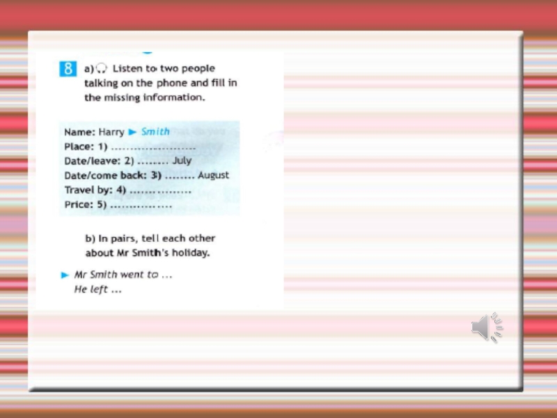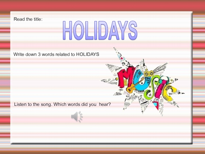 Read the title: HOLIDAYSWrite down 3 words related to HOLIDAYSListen to the song. Which words did you