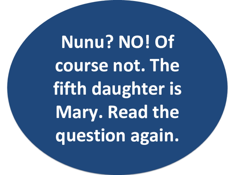 Слайд 15Nunu? NO! Of course not. The fifth daughter is Mary. Read