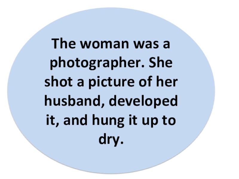 The woman was a photographer. She shot a picture of her husband, developed it, and hung it