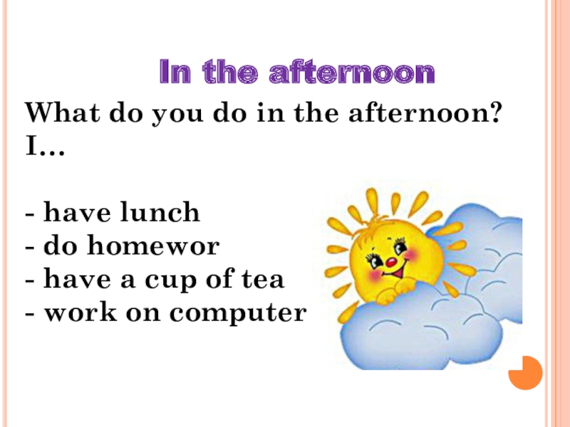 In the afternoon What do you do in the afternoon?I… - have lunch- do homewor- have a