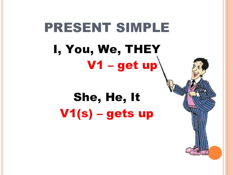 PRESENT SIMPLEI, You, We, THEY    V1 – get upShe, He, ItV1(s) – gets up
