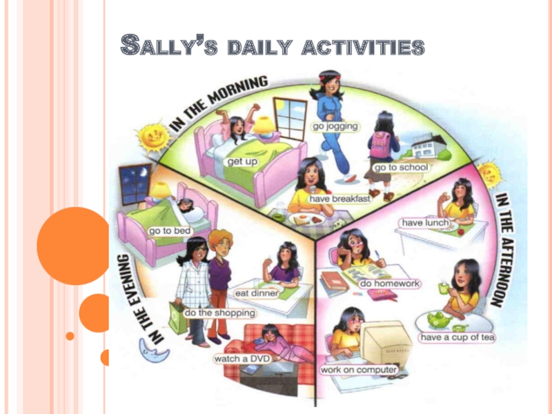 Слайд 4Sally’s daily activities