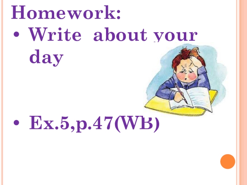 Homework:Write about your dayEx.5,p.47(WB)