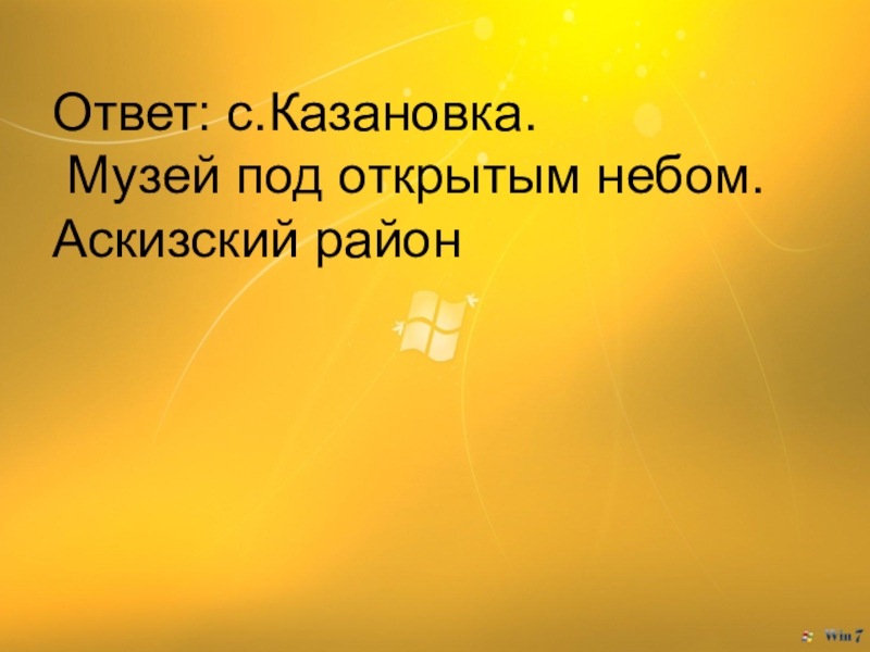 Слайд 7Ответ: с.Казановка. Музей под открытым небом. Аскизский район