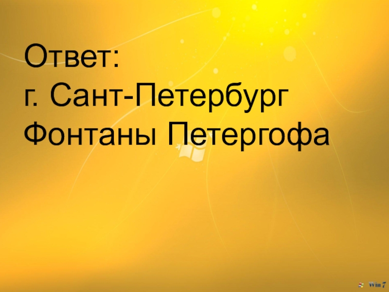 Слайд 14Ответ: г. Сант-Петербург Фонтаны Петергофа