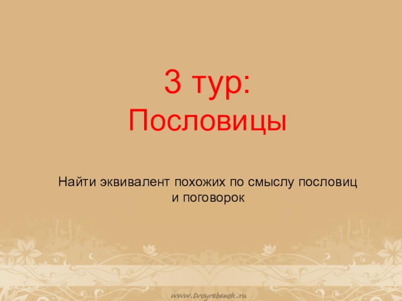 Слайд 273 тур: Пословицы Найти эквивалент похожих по смыслу пословиц и поговорок