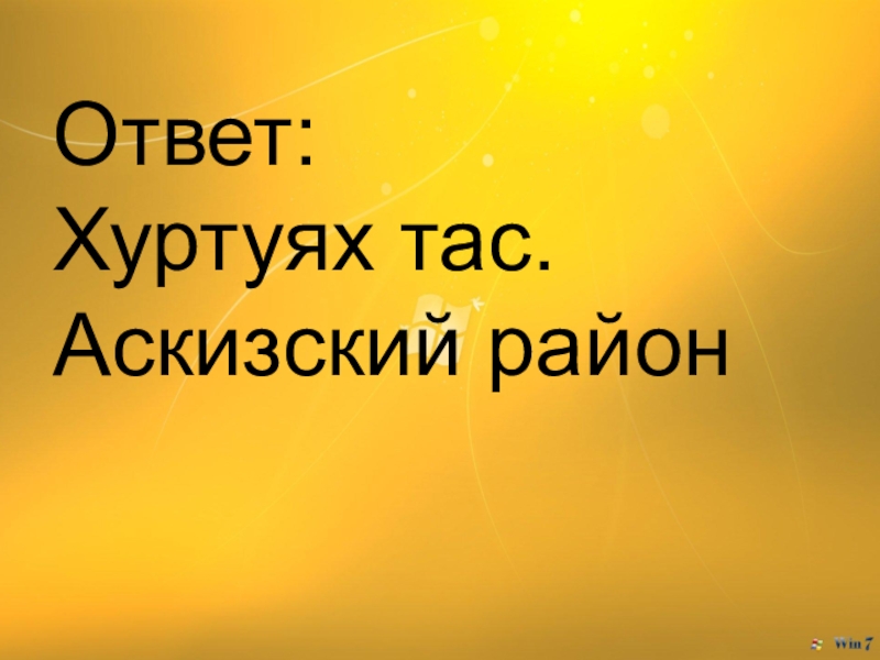 Слайд 5Ответ: Хуртуях тас. Аскизский район