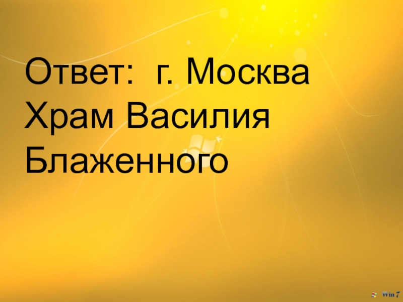 Слайд 12Ответ: г. Москва Храм Василия Блаженного