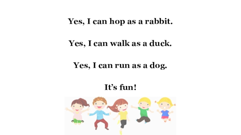 Слайд 3Yes, I can hop as a rabbit.