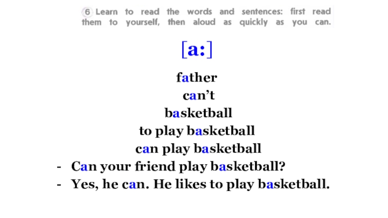[a:]father can’t basketballto play basketball can play basketballCan your friend play basketball? Yes, he can. He likes