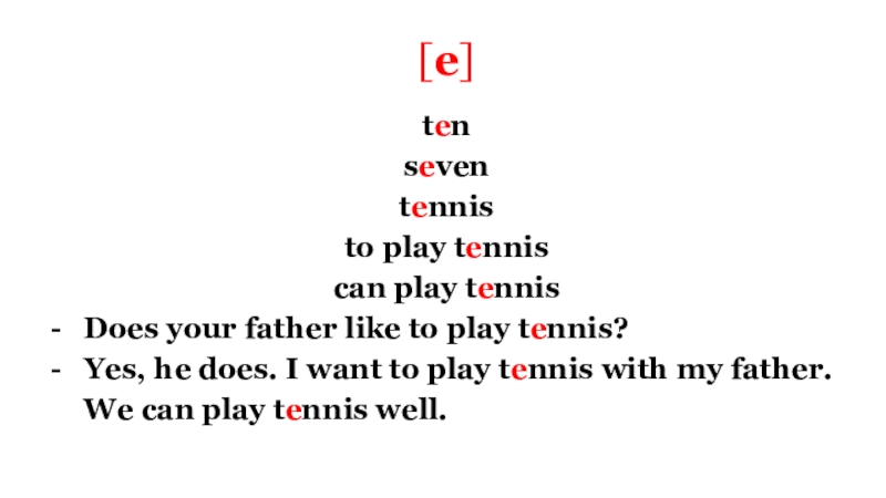 [e]tenseventennisto play tenniscan play tennisDoes your father like to play tennis?Yes, he does. I want to play