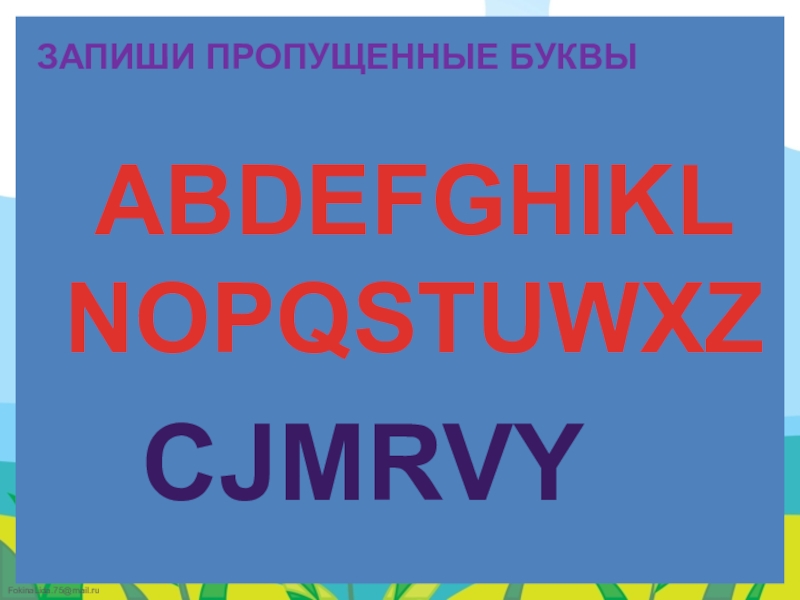 ЗАПИШИ ПРОПУЩЕННЫЕ БУКВЫABDEFGHIKLNOPQSTUWXZCJMRVY