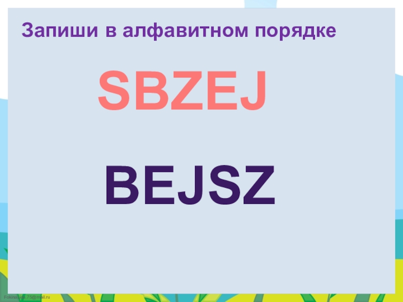 Запиши в алфавитном порядкеSBZEJBEJSZ