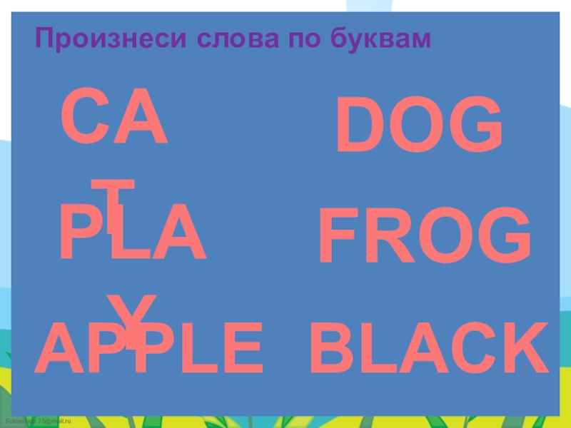 Произнеси слова по буквамCATDOGPLAYFROGAPPLEBLACK