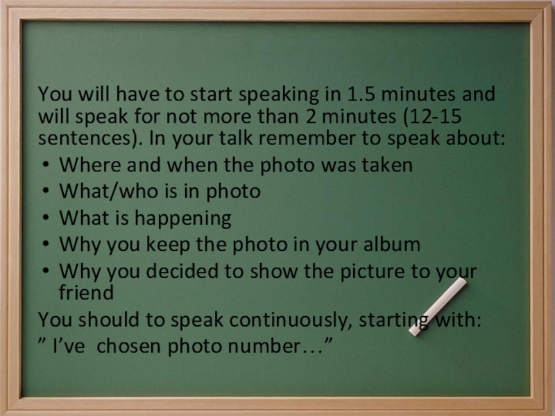 Слайд 10You will speak for not more than 2 minutes(12-15sentences).You have to