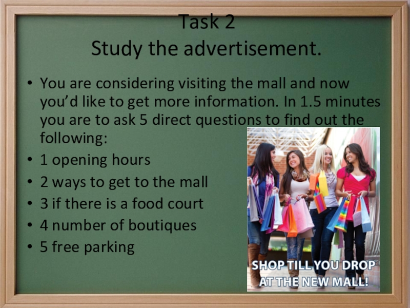you’d like to get more information. In 1.5 minutes you are to ask 5 direct questions to find out the following: