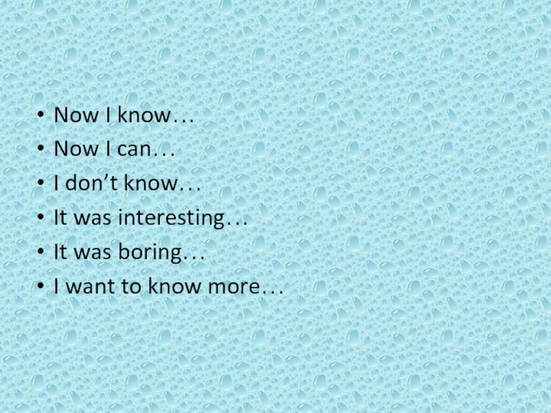 Now I know…Now I can…I don’t know…It was interesting…It was boring…I want to know more…