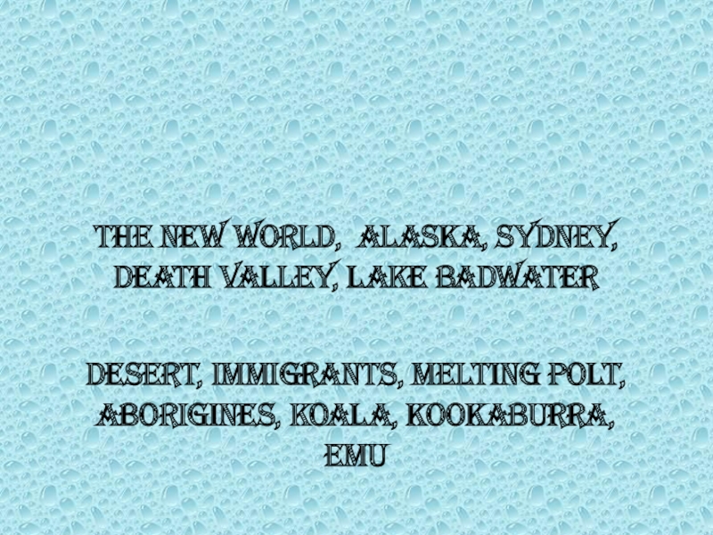 Слайд 2The New World, Alaska, Sydney, Death Valley, Lake Badwater