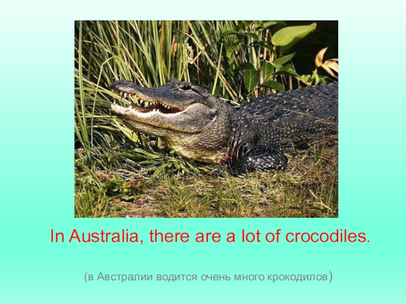 Слайд 2 In Australia, there are a lot of crocodiles.