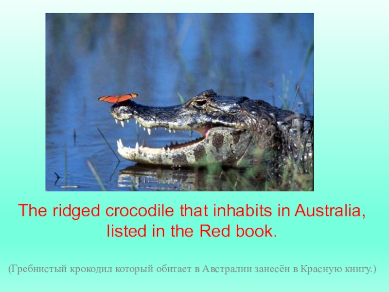 Слайд 9The ridged crocodile that inhabits in Australia,