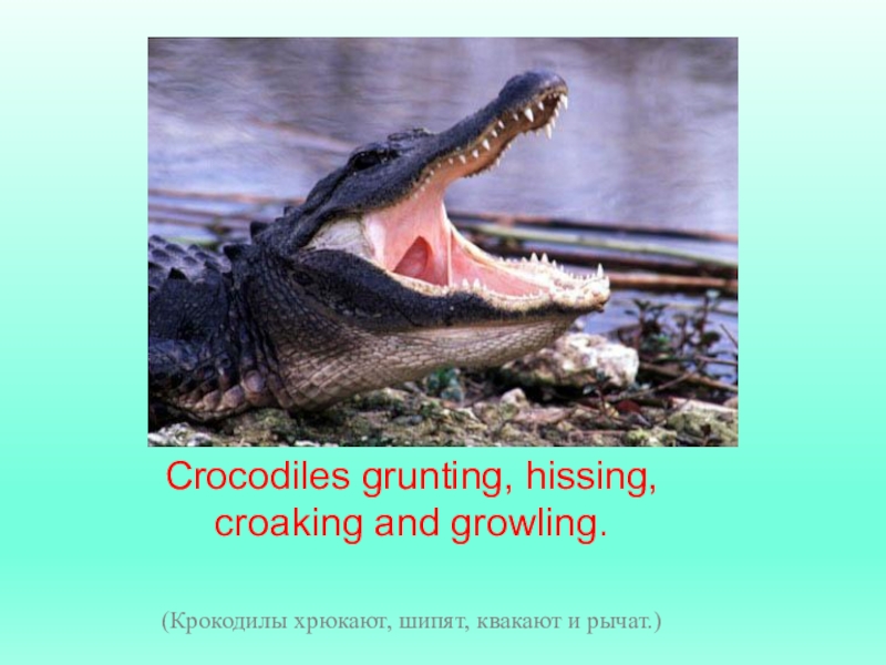 Слайд 7Crocodiles grunting, hissing,