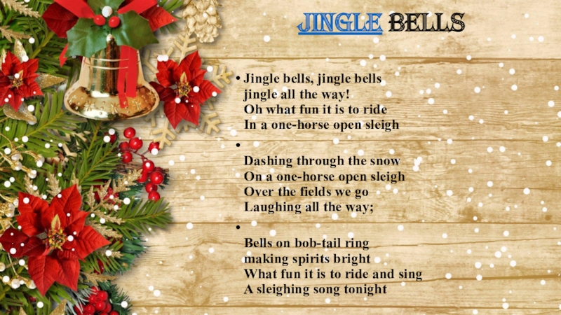 JINGLE BELLSJingle bells, jingle bells  jingle all the way!  Oh what fun it is to