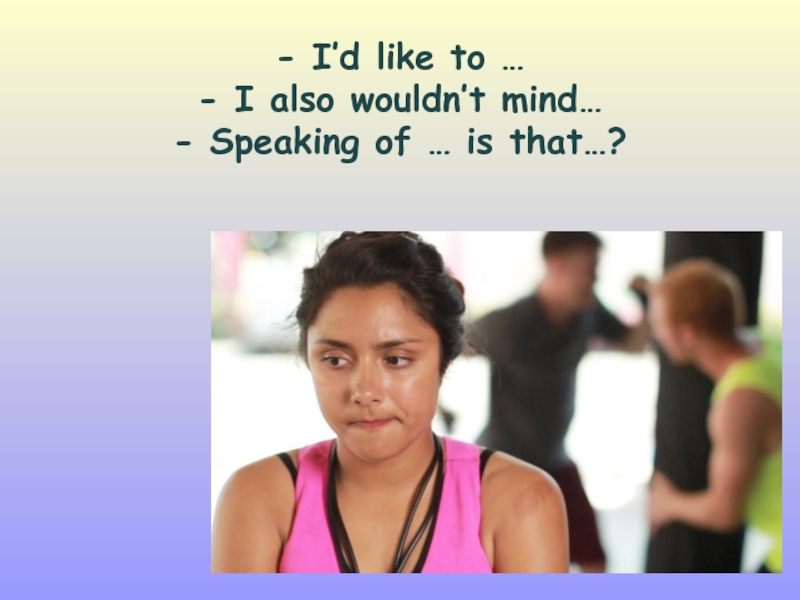 Слайд 4- I’d like to … - I also wouldn’t mind… - Speaking of