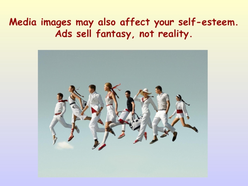 Слайд 8Media images may also affect your self-esteem. Ads sell fantasy, not