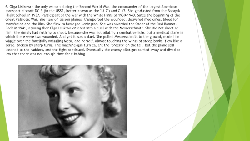 Слайд 76. Olga Lisikova - the only woman during the Second World