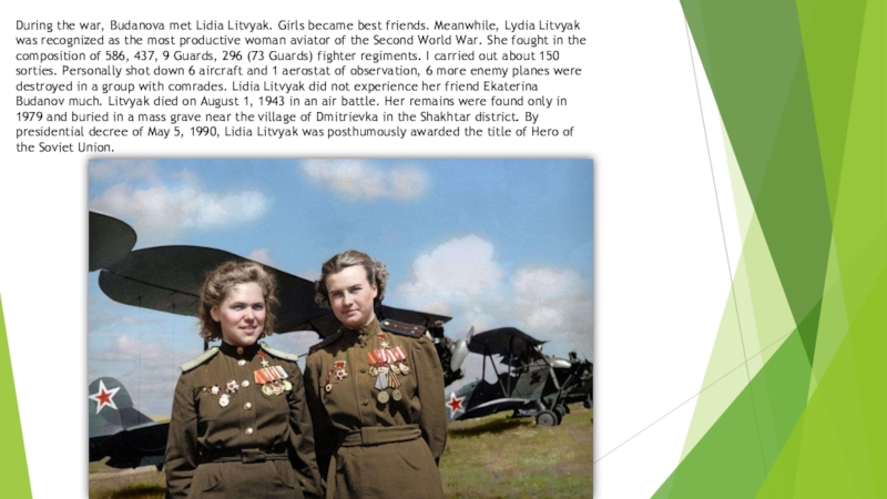 Слайд 3During the war, Budanova met Lidia Litvyak. Girls became best friends.
