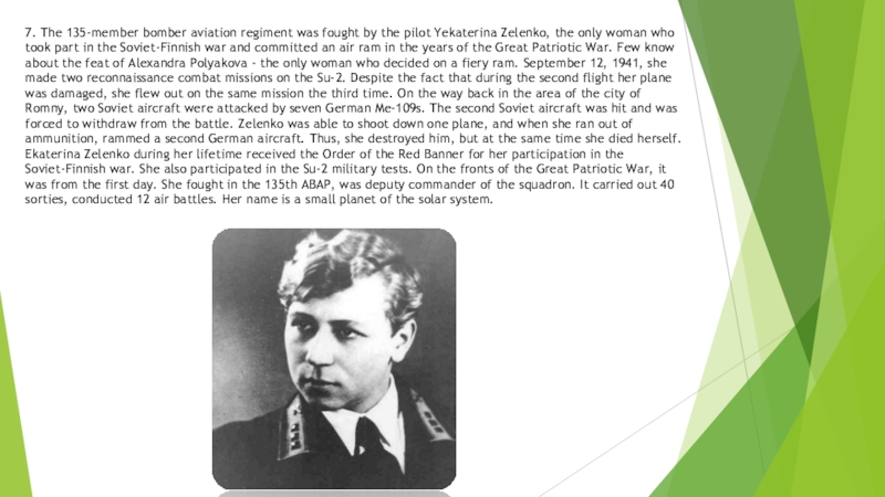 Слайд 87. The 135-member bomber aviation regiment was fought by the pilot
