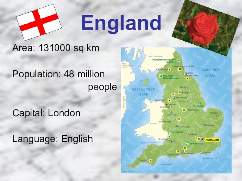 EnglandArea: 131000 sq kmPopulation: 48 million