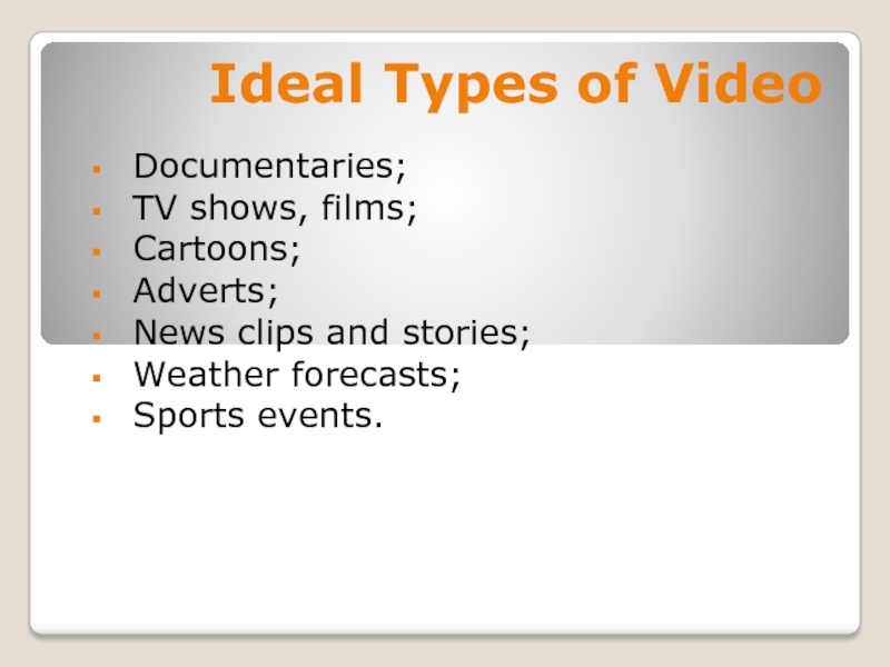 Это сайт презентаций, где можно хранить и обмениваться своими презентациями, докладами, проектами, шаблонами в формате PowerPoint с другими пользователями. Мы помогаем школьникам, студентам, учителям, преподавателям хранить и обмениваться учебными материалами.