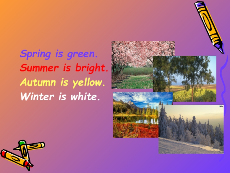 Spring is green.Summer is bright.Autumn is yellow.Winter is white.