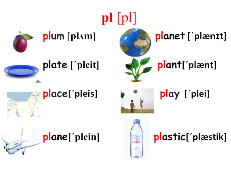 pl [pl]plum [plʌm]            planet [ˈplænɪt]plate [ˊpleit]
