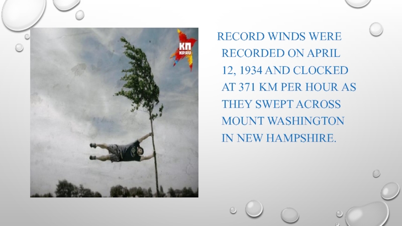 Слайд 5 Record winds were recorded on april 12, 1934 and clocked