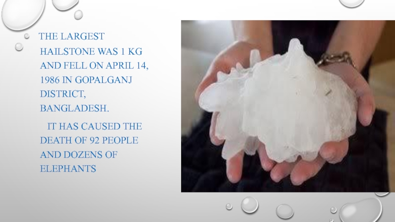 Слайд 10 The largest hailstone was 1 kg and fell on april