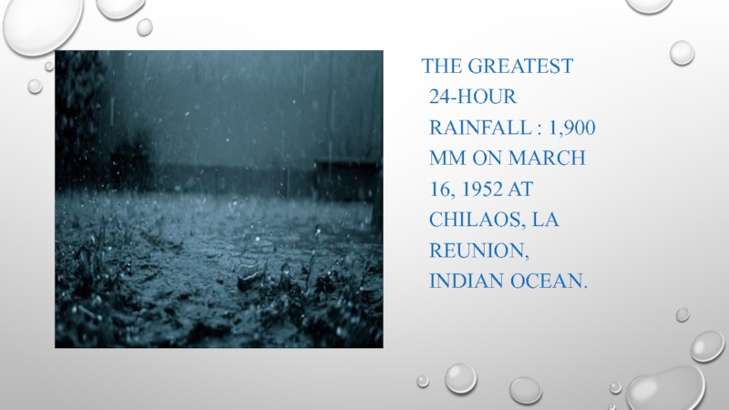 Слайд 11 The greatest 24-hour rainfall : 1,900 mm on march 16,