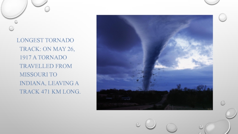 Слайд 4 Longest tornado track: on may 26, 1917 a tornado traveLled