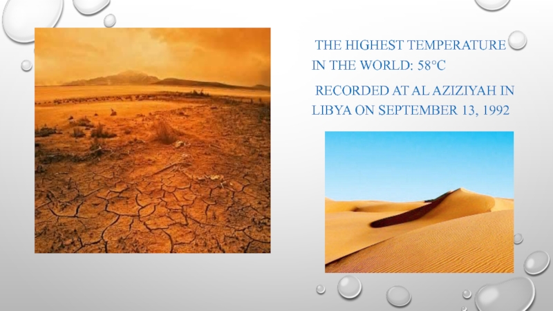 Слайд 9 The highest temperature in the world: 58°c