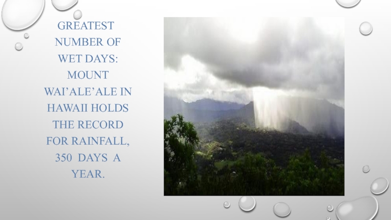 Слайд 6 Greatest number of wet days: Mount wai’ale’ale in hawaii holds
