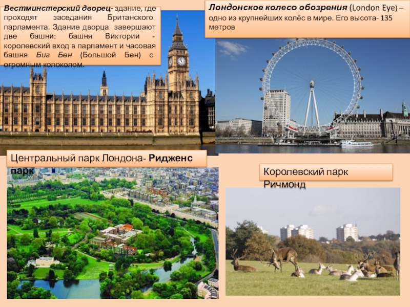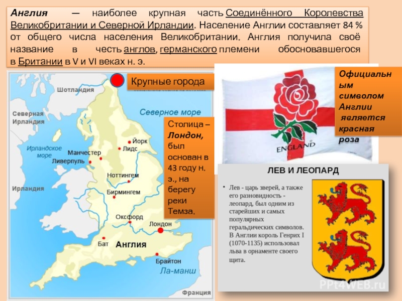 Столица – Лондон, был основан в 43 году н.э., на берегу реки Темза.