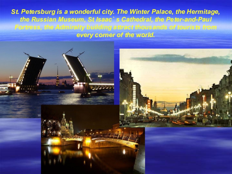 Слайд 5St. Petersburg is a wonderful city. The Winter Palace, the Hermitage,