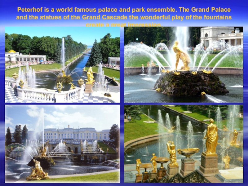 Слайд 7Peterhof is a world famous palace and park ensemble. The Grand