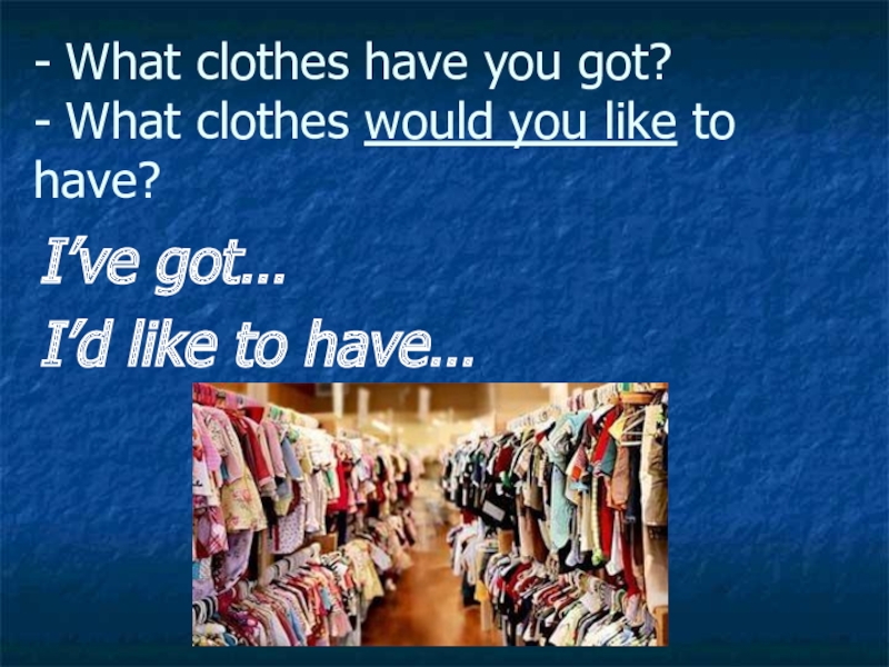 - What clothes have you got?  - What clothes would you like to have?I’ve got…I’d like
