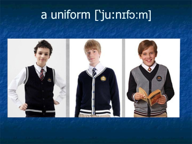 Слайд 8a uniform [‘ju:nɪfɔ:m]