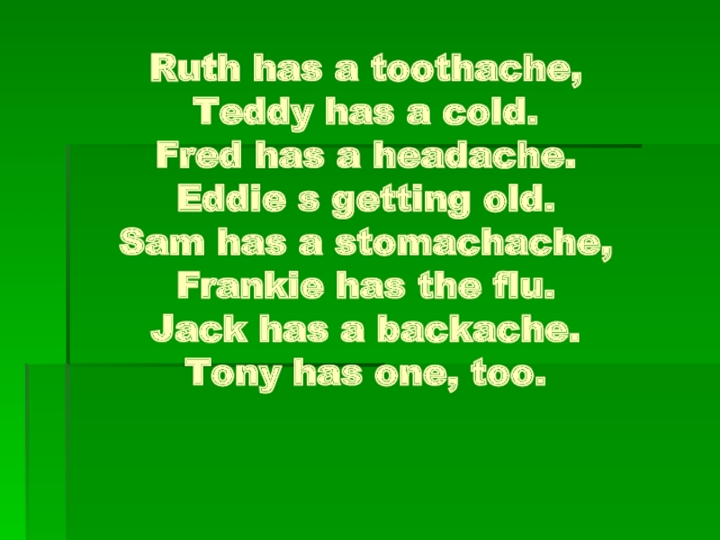 Sam has a stomachache,