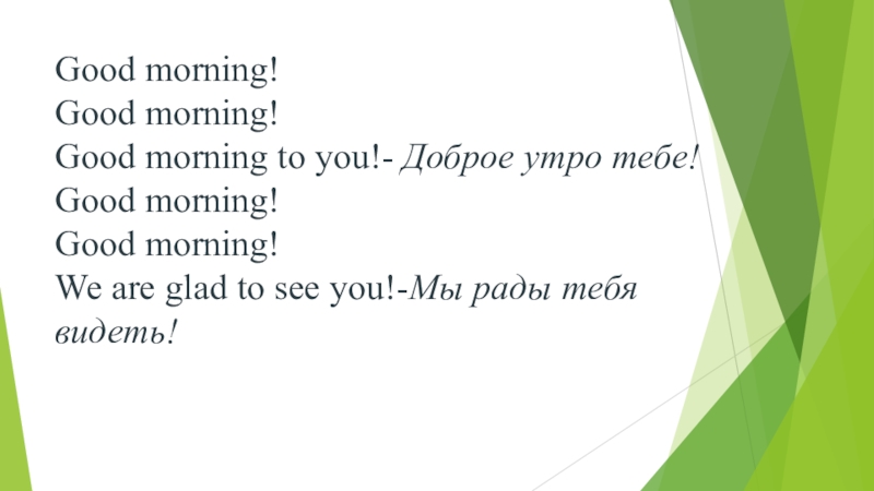 Слайд 2Good morning! Good morning! Good morning to you!- Доброе утро тебе! Good morning! Good morning! We